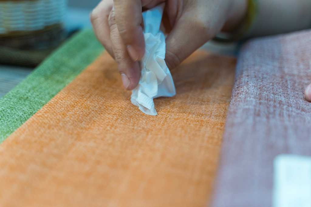 為了測試它高抗汙與防潑水的能力,服務人員直接將醬油和水倒在表布上!