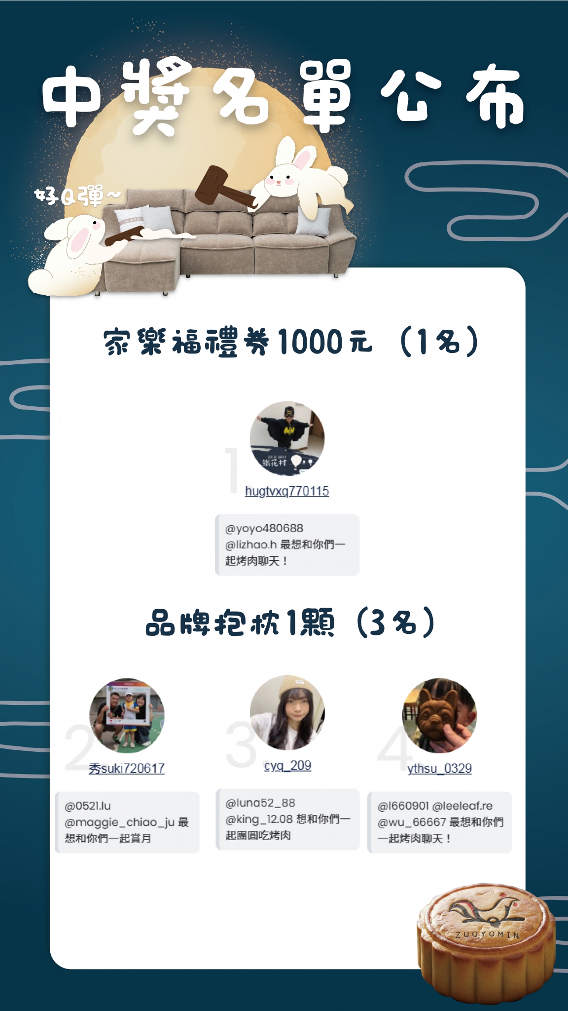 謝謝大家熱情參與【中秋Chill送好禮!】中秋節留言抽獎活動!