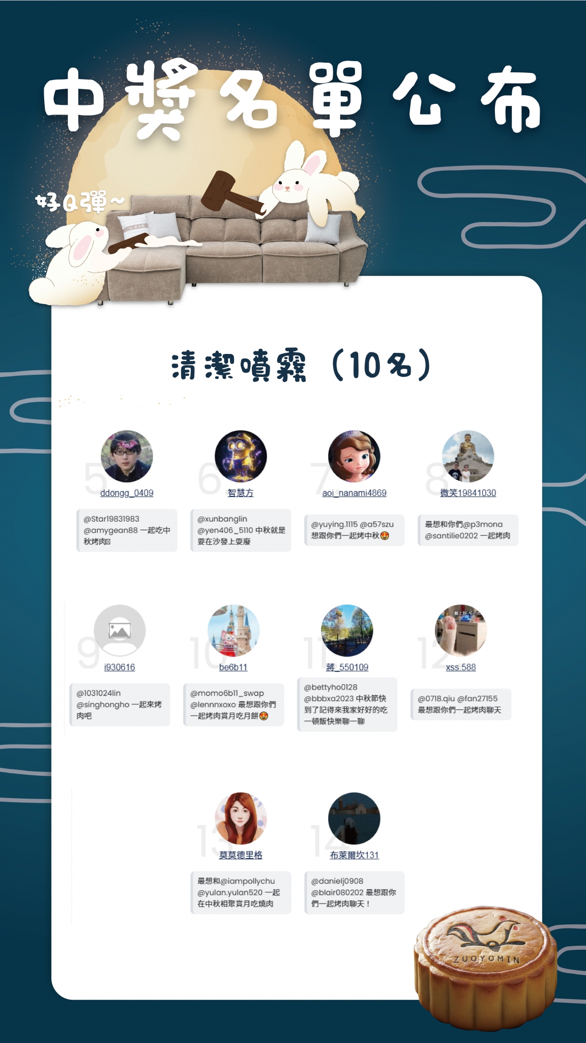 🎁 得獎名單出爐啦(請中獎者於 10/22 前私訊小編領獎事宜喔):