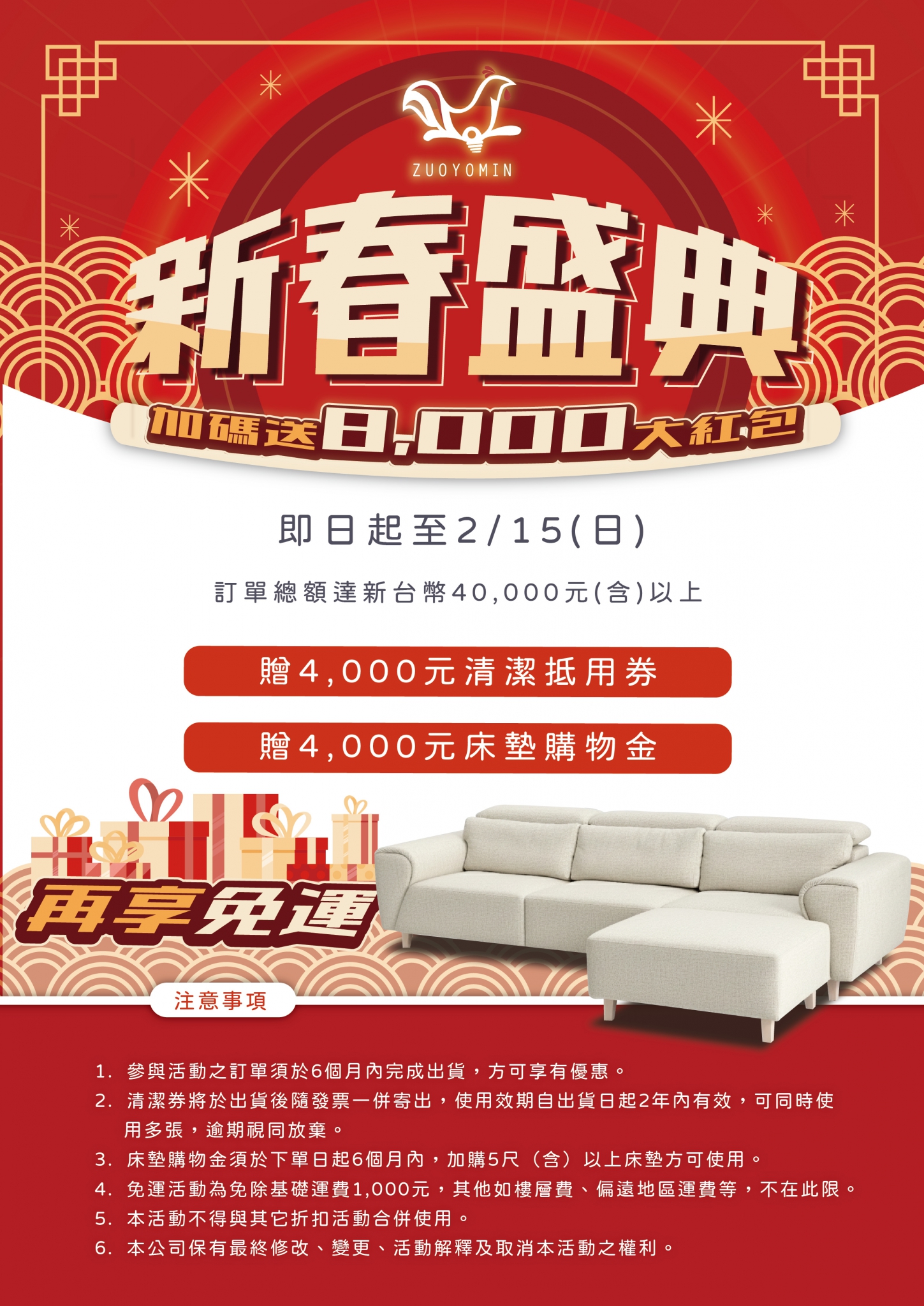 馬年新春開運檔!買沙發送 $8,000 再享免運🚚