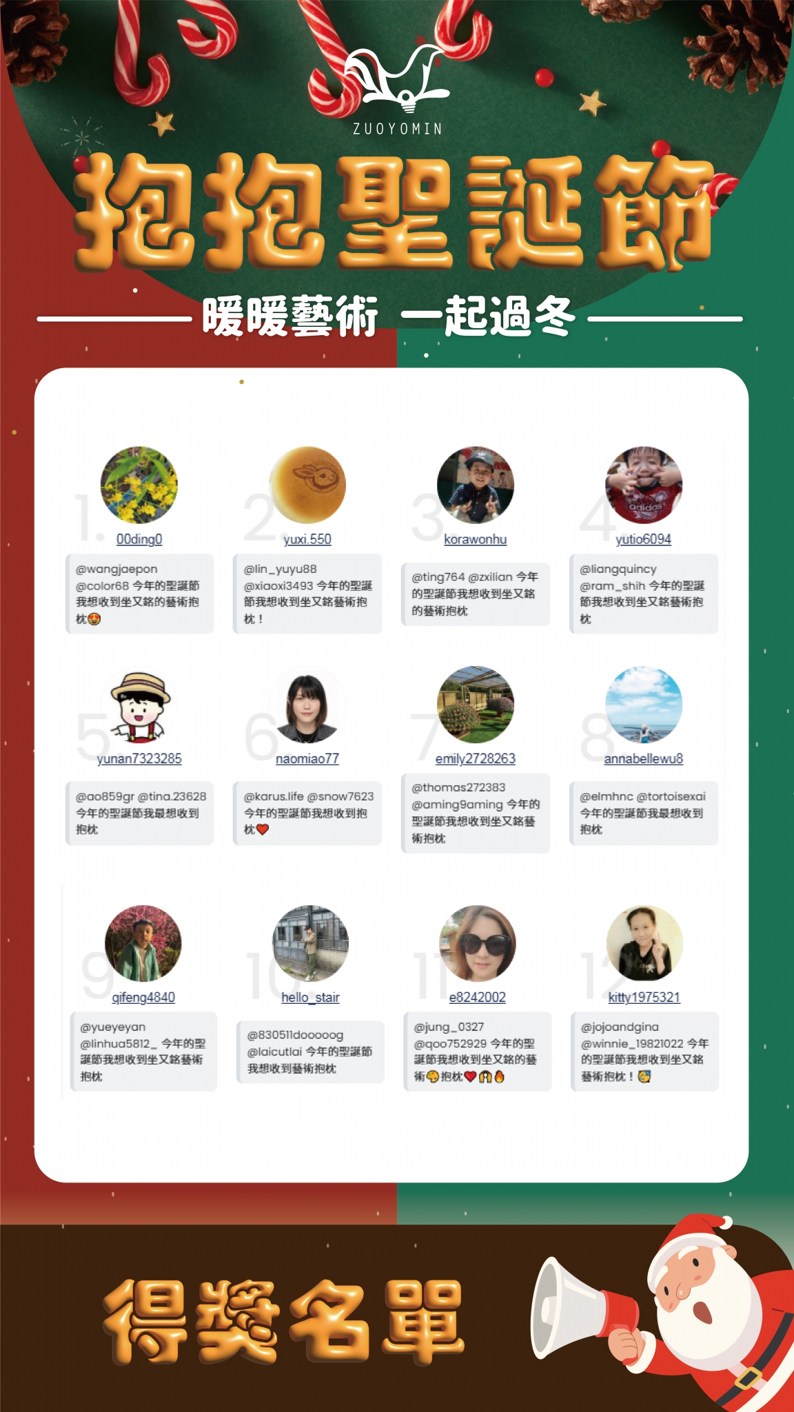謝謝大家熱情參與【抱抱聖誕節!】聖誕節留言抽獎活動!