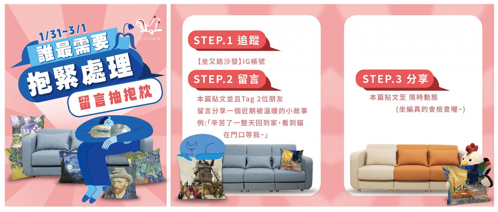 • 特選(5 名): 坐又銘藝術抱枕 (由小編親自選出最動人的故事得主,送出這份專屬暖意!)