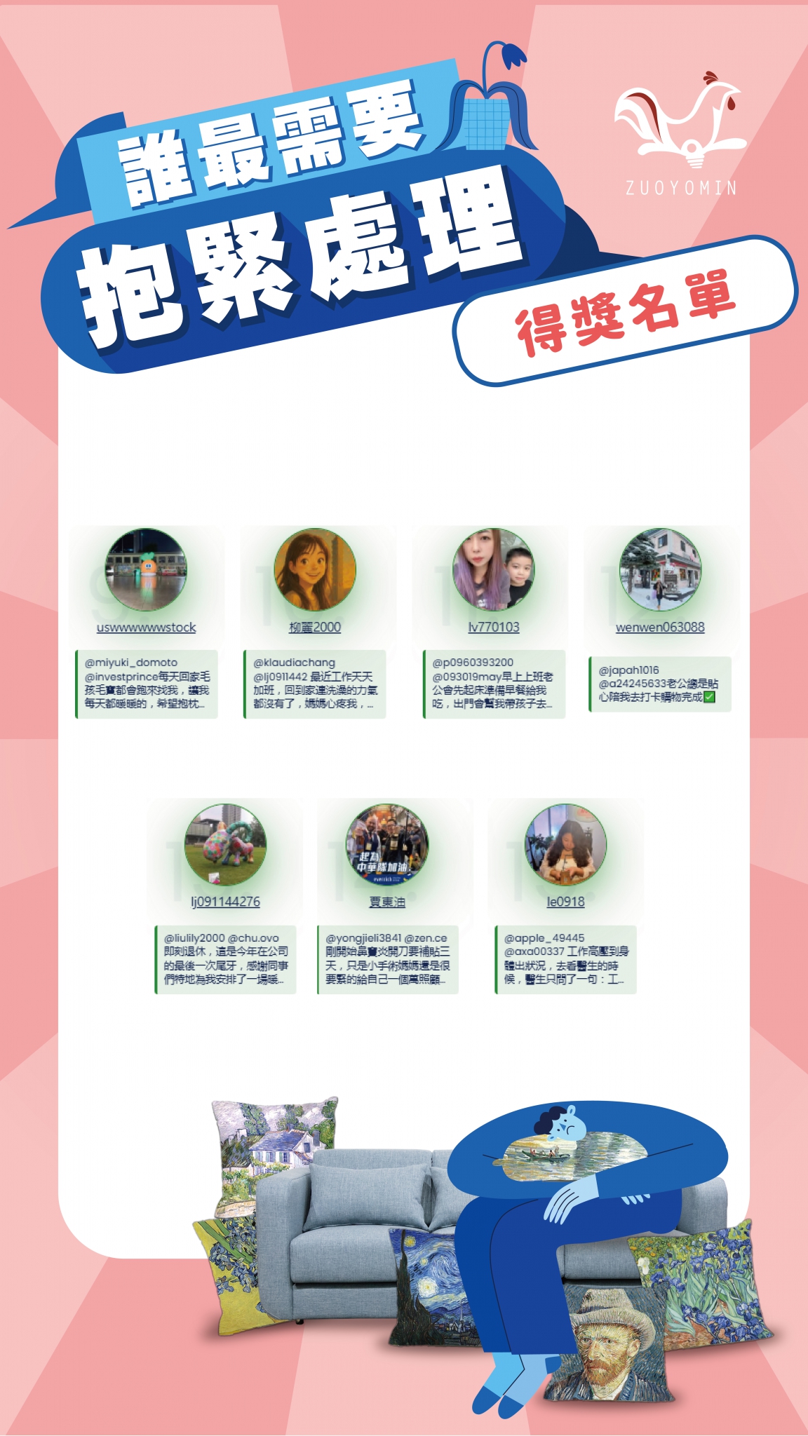 謝謝大家熱情參與【抱緊處理】留言抽獎活動!
