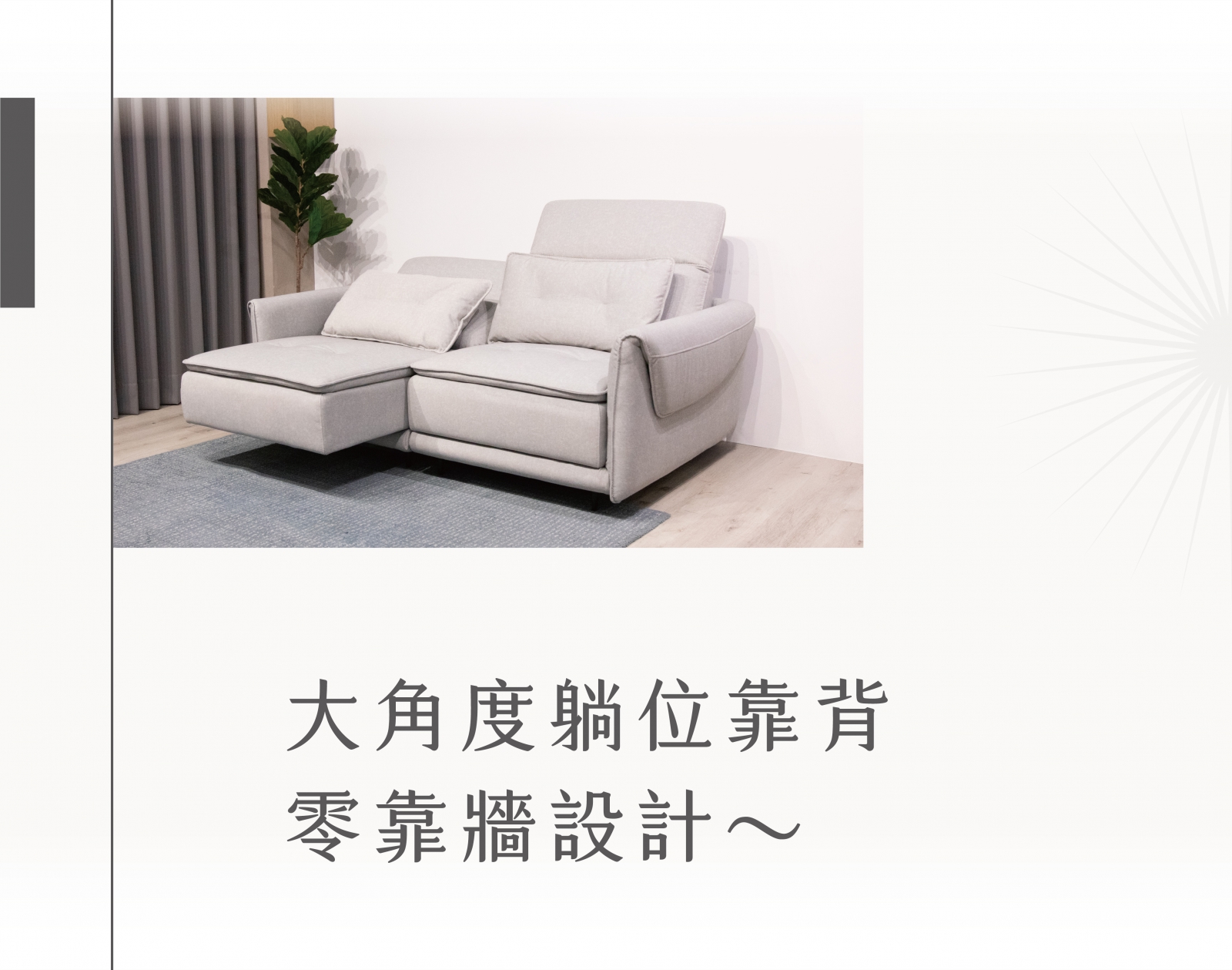 搭配「懸浮式平推坐墊」,流暢調節讓雙腿在忙碌一天後得到徹底釋放,享受無拘無束的放鬆感~